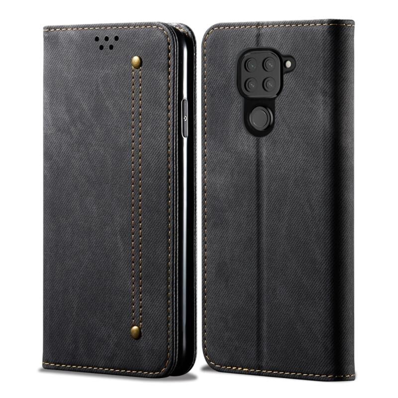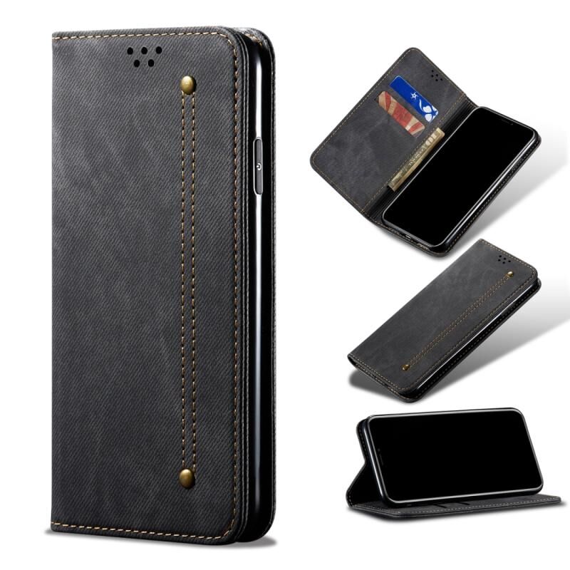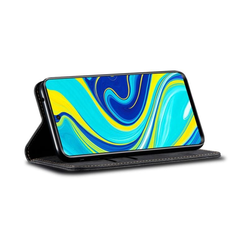 Για Xiaomi Redmi Note 9 Denim Texture Casual Style Οριζόντια Flip δερμάτινη θήκη με θήκη & υποδοχές για κάρτες & πορτοφόλι (μαύρο)
