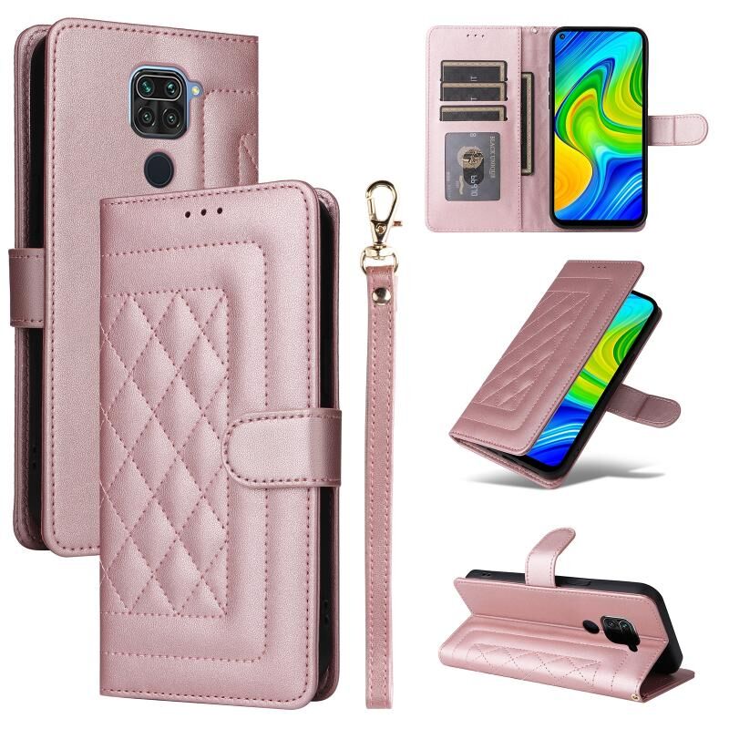 Για Xiaomi Redmi Note 9 Diamond Lattice δερμάτινη θήκη Flip Phone Case (Ροζ χρυσός)