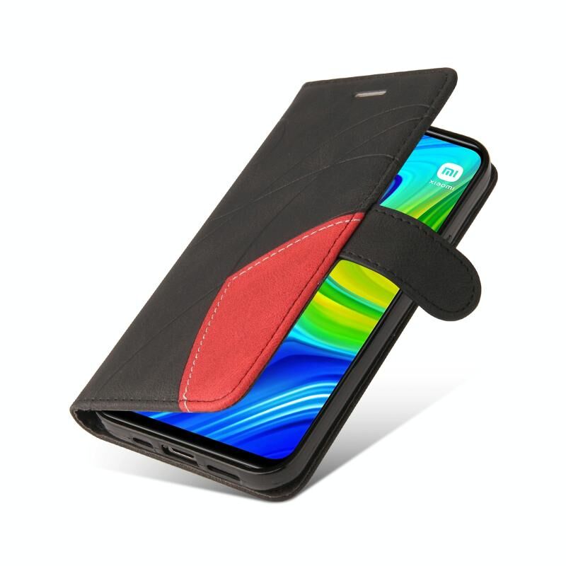 Για Xiaomi Redmi Note 9 Διπλό χρώμα Splicing οριζόντια Flip PU δέρμα υπόθεση με θήκη & υποδοχές καρτών & πορτοφόλι (Μαύρο)