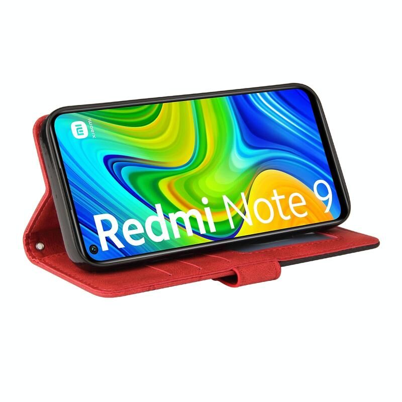 Για Xiaomi Redmi Note 9 Διπλό χρώμα Splicing οριζόντια Flip PU δέρμα υπόθεση με θήκη & υποδοχές καρτών & πορτοφόλι (Κόκκινο)