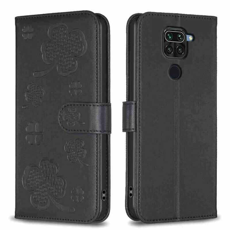 Για Xiaomi Redmi Note 9 τετράφυλλο ανάγλυφη δερμάτινη θήκη τηλεφώνου (Μαύρο)