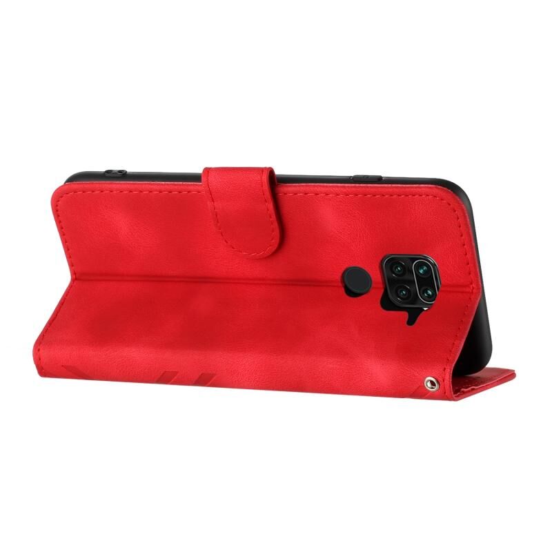 Για Xiaomi Redmi Note 9 Global/10X 4G Line Pattern Skin Feel Leather Phone Case (κόκκινο)