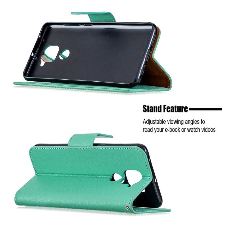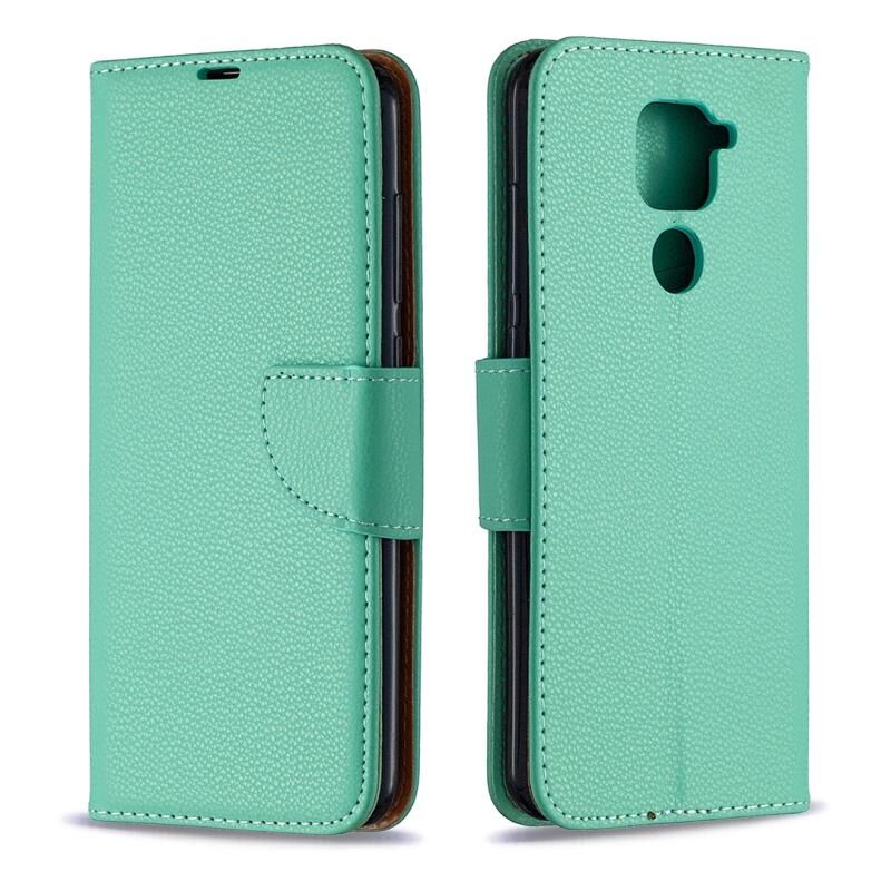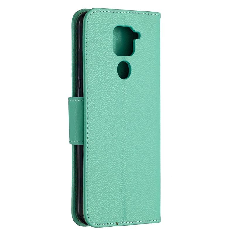 Για Xiaomi Redmi Note 9 Litchi υφή καθαρό χρώμα οριζόντια Flip δερμάτινη θήκη με θήκη & υποδοχές για κάρτες & πορτοφόλι & κορδόνι (πράσινο)