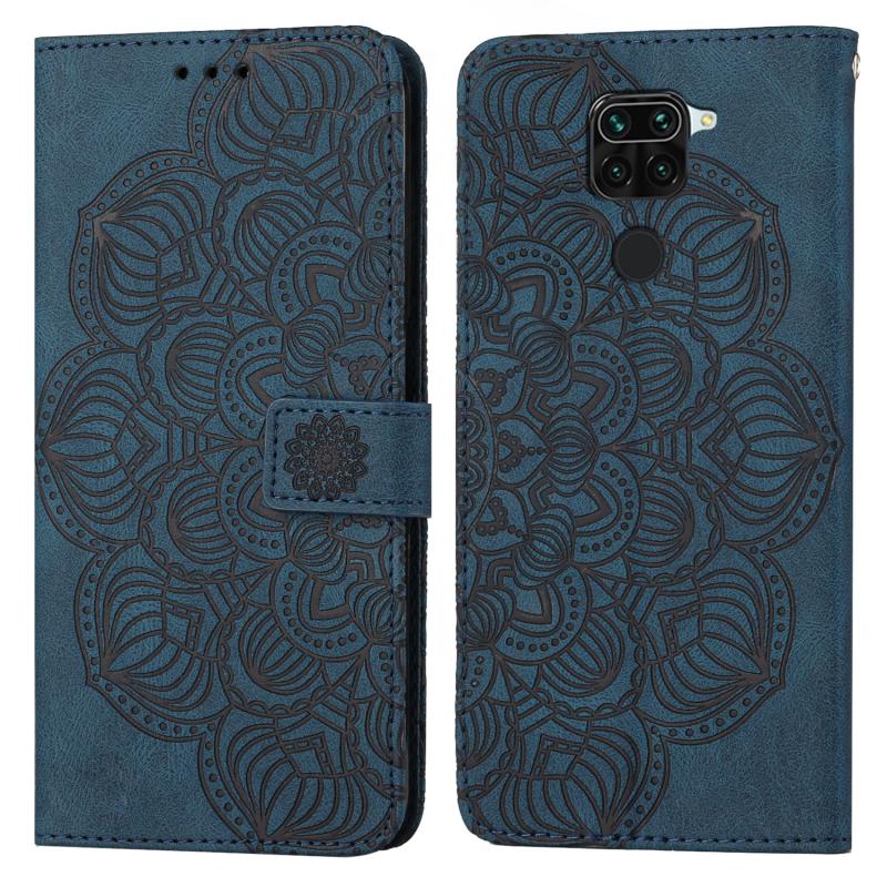Θήκη τηλεφώνου από δέρμα με ανάγλυφο μανταλά για Xiaomi Redmi Note 9 (Μπλε)