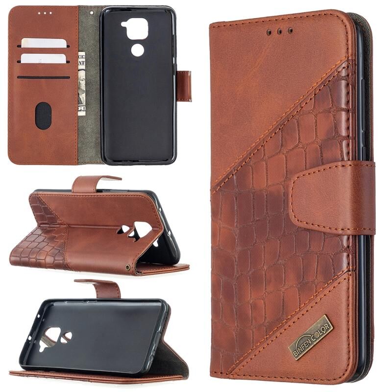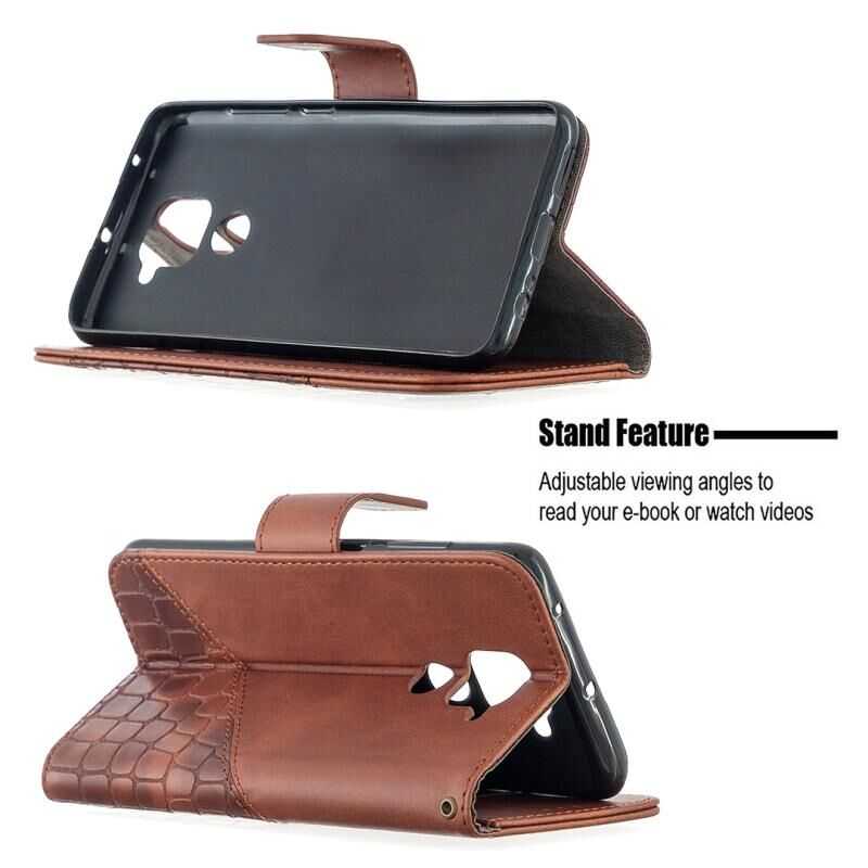 Θήκη για Xiaomi Redmi Note 9, οριζόντια, με υφή κροκόδειλου, από δερματίνη PU, σε χρώμα που ταιριάζει, με πορτοφόλι, βάση & θήκες για κάρτες (Μαύρο)