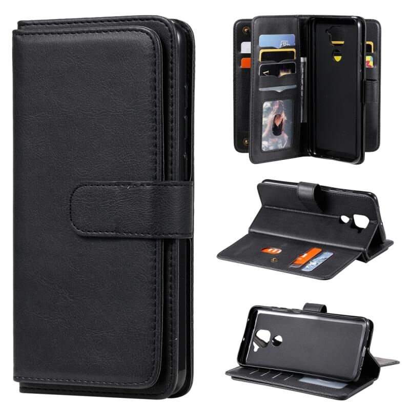 Για Xiaomi Redmi Note 9 Πολυλειτουργική μαγνητική χάλκινη πόρπη οριζόντια Flip αμιγές χρώμα δερμάτινη θήκη με 10 υποδοχές για κάρτες & πορτοφόλι & θήκη & κορνίζα φωτογραφιών (μαύρο)