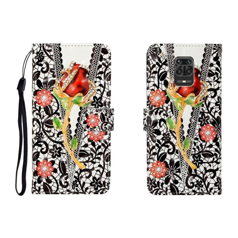 Θήκη δέρματος οριζόντιας αναδίπλωσης 3D με έγχρωμο σχέδιο για Xiaomi Redmi Note 9 Pro με βάση στήριξης & υποδοχή κάρτας & πορτοφόλι (κόκκινο)