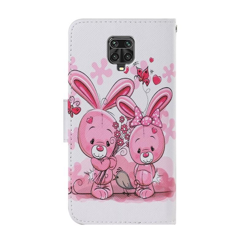Θήκη για Xiaomi Redmi Note 9 Pro / 9 Pro Max / 9s με πολύχρωμο σχέδιο, οριζόντια αναδιπλούμενη από δερματίνη PU με βάση στήριξης & θήκες για κάρτες & πορτοφόλι & κορδόνι (Χαριτωτό Κουνέλι)