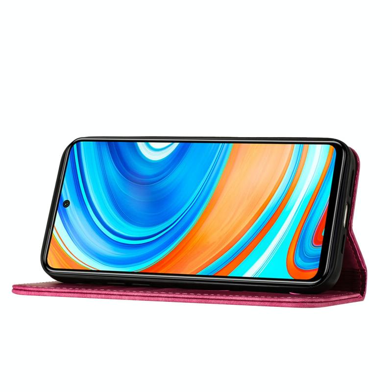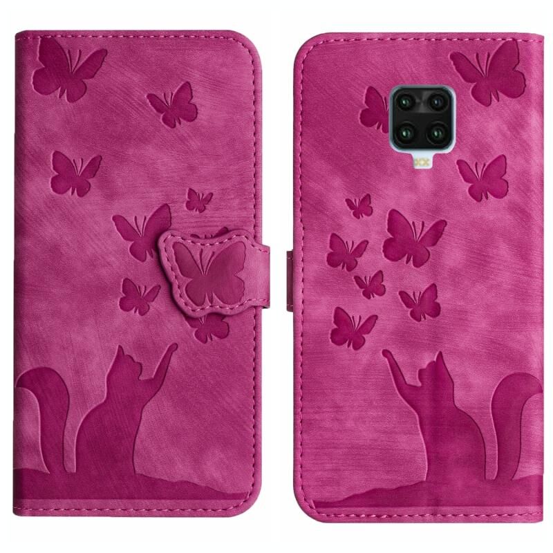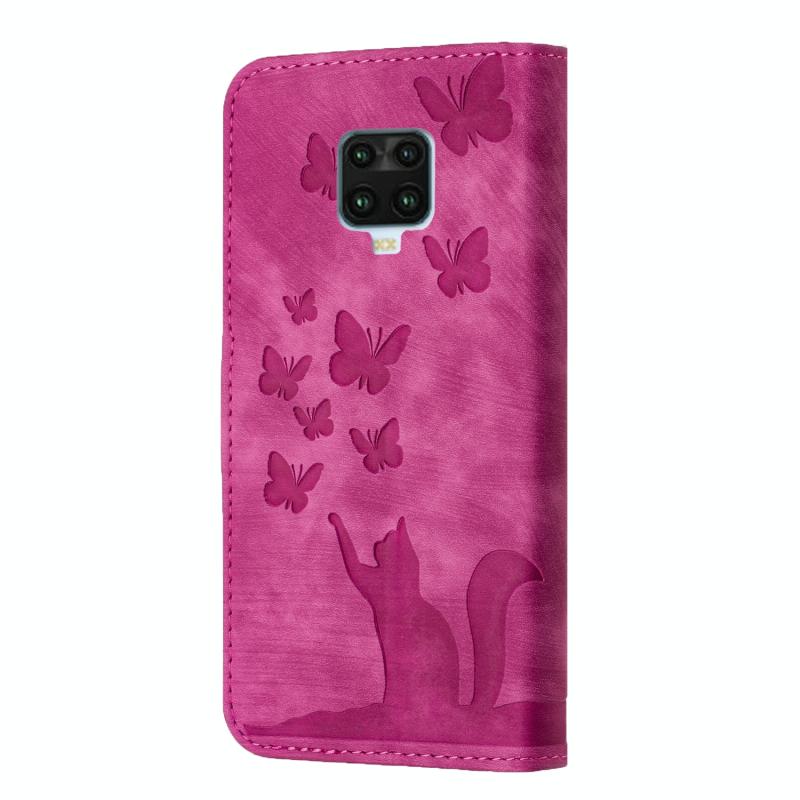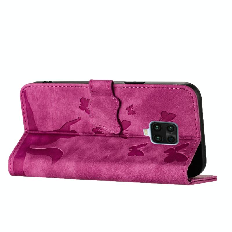 Θήκη δερμάτινη flip με ανάγλυφο σχέδιο γάτας για Xiaomi Redmi Note 9 Pro (Ροζ)