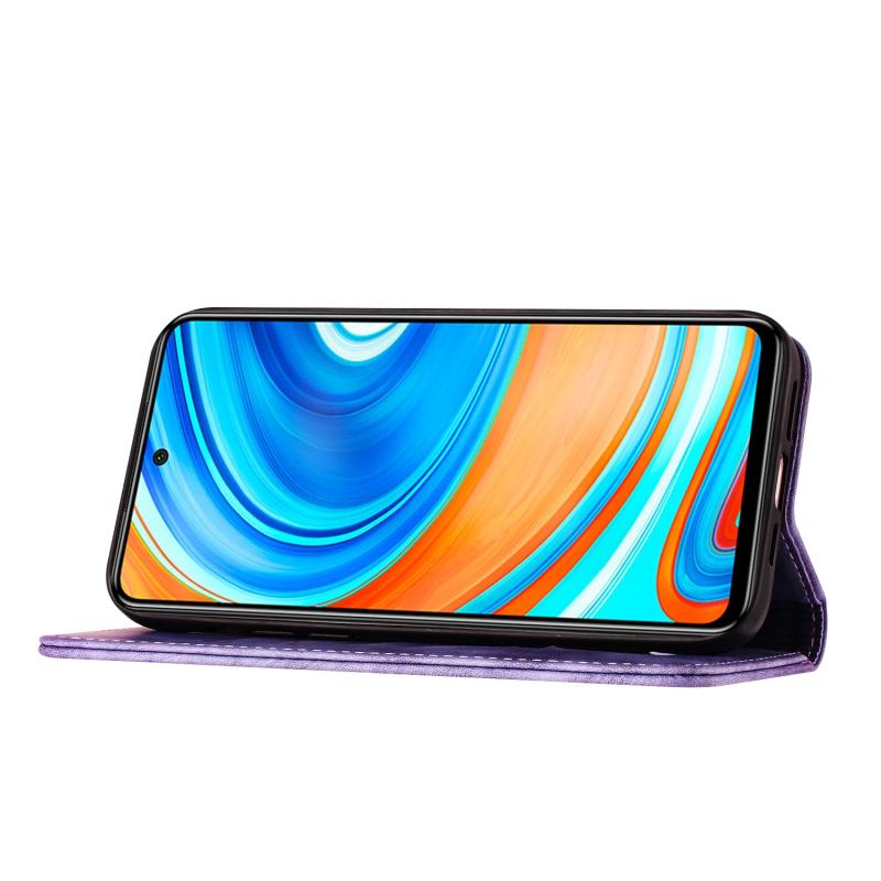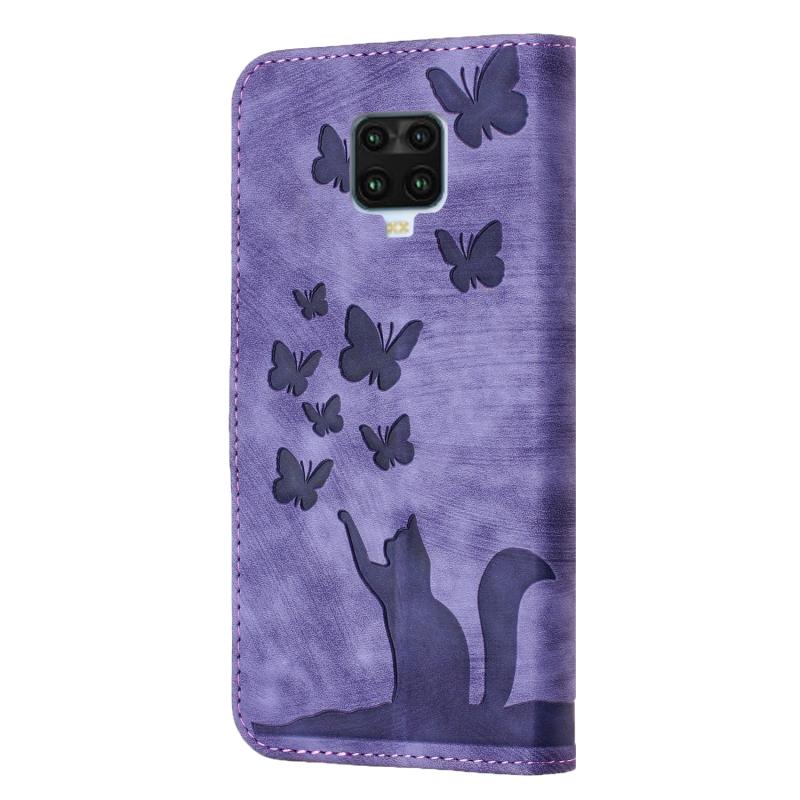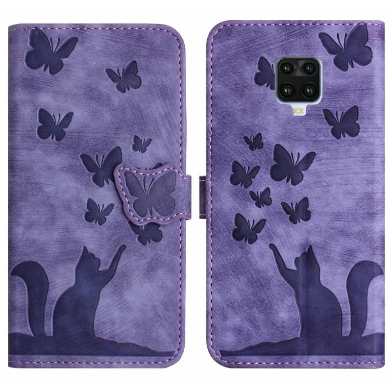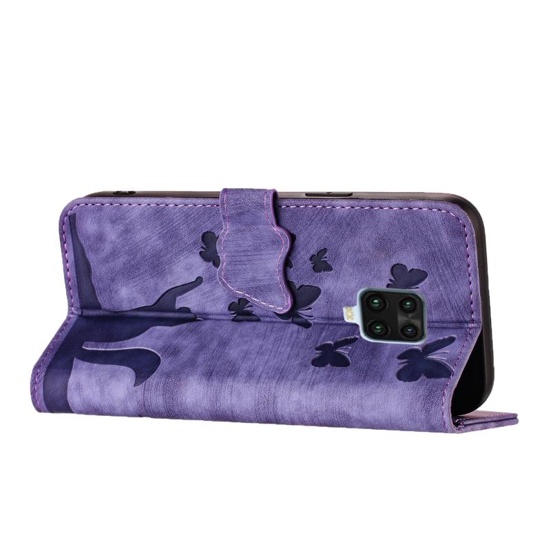 Θήκη δερμάτινη flip με ανάγλυφο σχέδιο γάτας για Xiaomi Redmi Note 9 Pro (Μωβ)