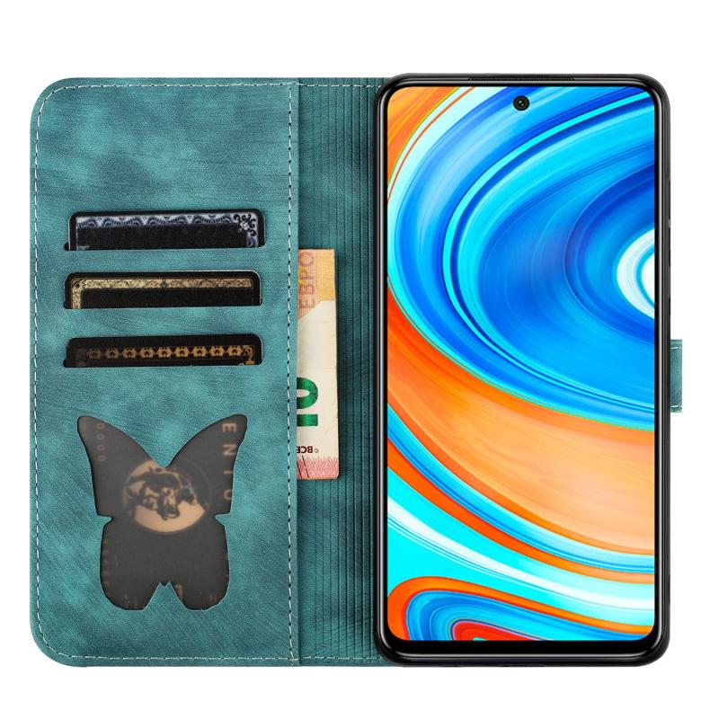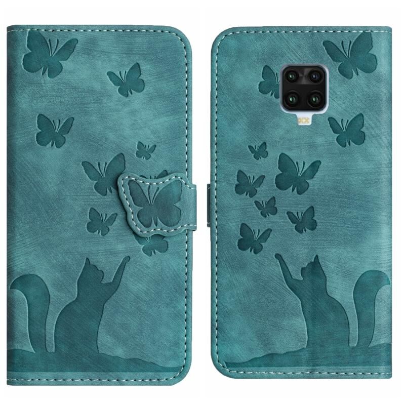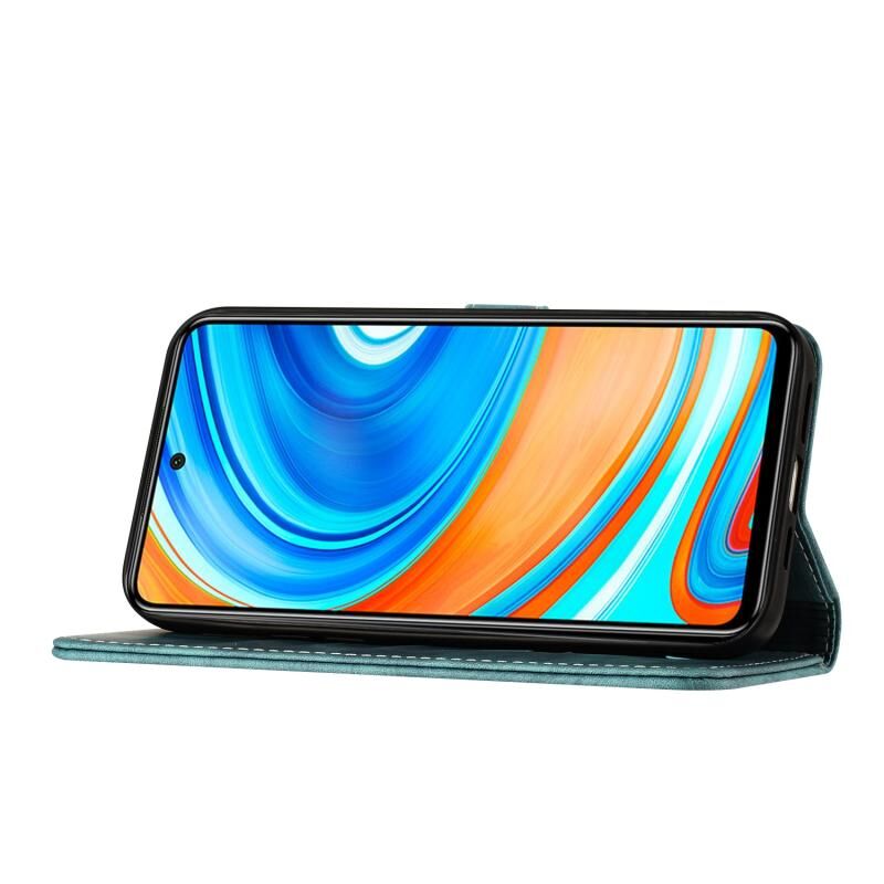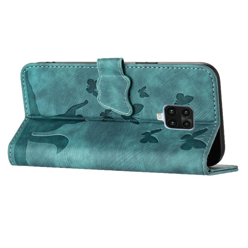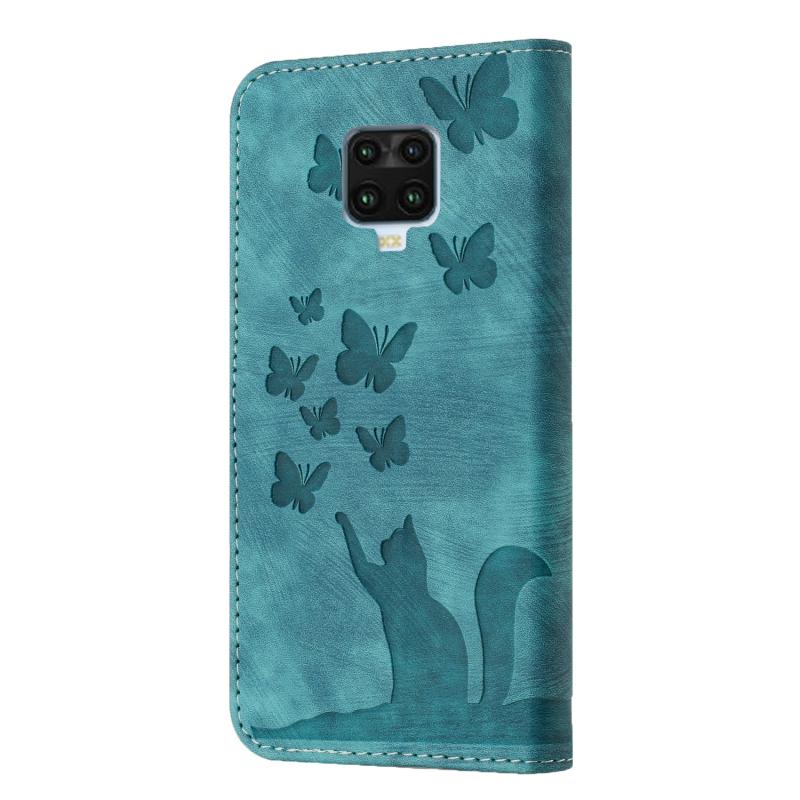 Θήκη δερμάτινη flip με ανάγλυφο σχέδιο γάτας για Xiaomi Redmi Note 9 Pro (Wathet)