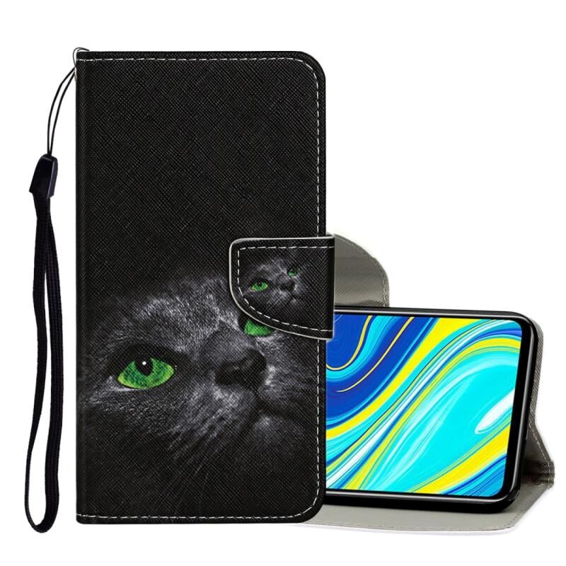 Θήκη δέρματος οριζόντιας αναδίπλωσης με σχέδιο πολύχρωμης ζωγραφικής για Xiaomi Redmi Note 9 Pro με βάση & υποδοχές καρτών & πορτοφόλι (Μαύρο Αστέρι)