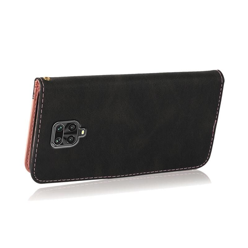 Για Xiaomi Redmi Note 9 Pro Διπλό χρώμα ραφή δερμάτινη θήκη τηλεφώνου (μαύρο ροζ χρυσό)