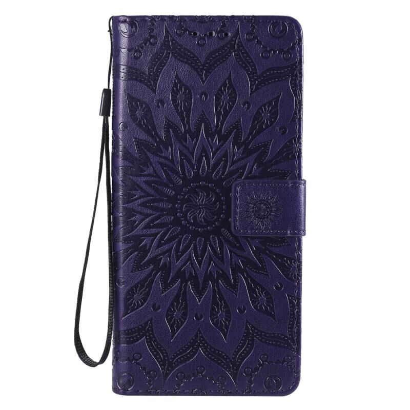 Για Xiaomi Redmi Note 9 Pro ανάγλυφο ηλιοτρόπιο μοτίβο οριζόντια Flip PU δέρμα υπόθεση με κάτοχο & υποδοχές για κάρτες & πορτοφόλι & Lanyard (μωβ)