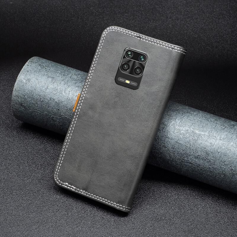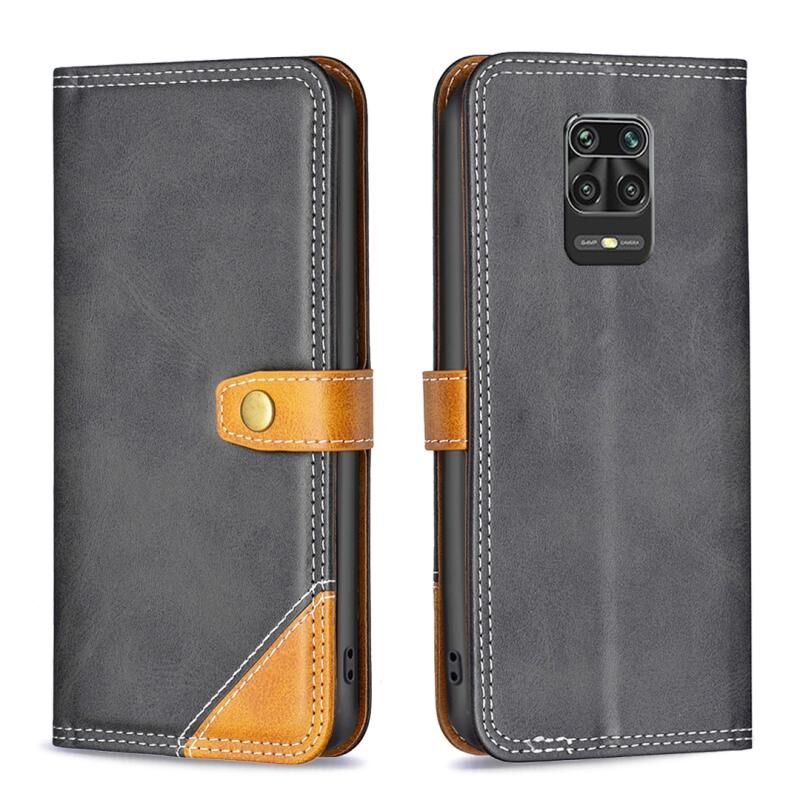 Θήκη τηλεφώνου δερμάτινη με διπλή ραφή και αντιστοίχιση χρωμάτων για Xiaomi Redmi Note 9 Pro Max (Μαύρο)