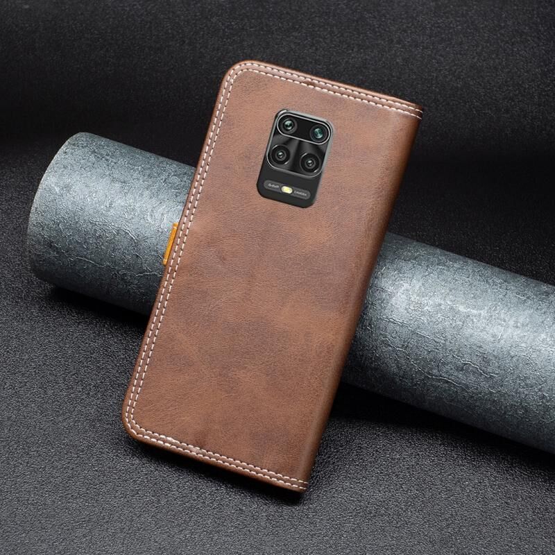 Θήκη τηλεφώνου δερμάτινη με διπλή ραφή και αντιστοίχιση χρωμάτων για Xiaomi Redmi Note 9 Pro Max (Μαύρο)