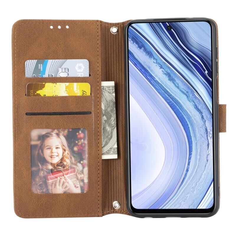 Για Xiaomi Redmi Note 9 Pro Max ανάγλυφη ριγέ μαγνητική πόρπη PU + TPU οριζόντια Flip δερμάτινη θήκη με κάτοχο & υποδοχή κάρτας & πορτοφόλι & κορνίζα φωτογραφιών & σφεντόνα (καφέ)