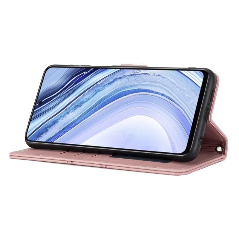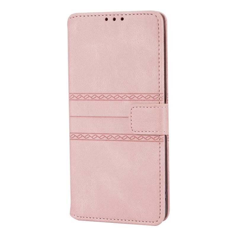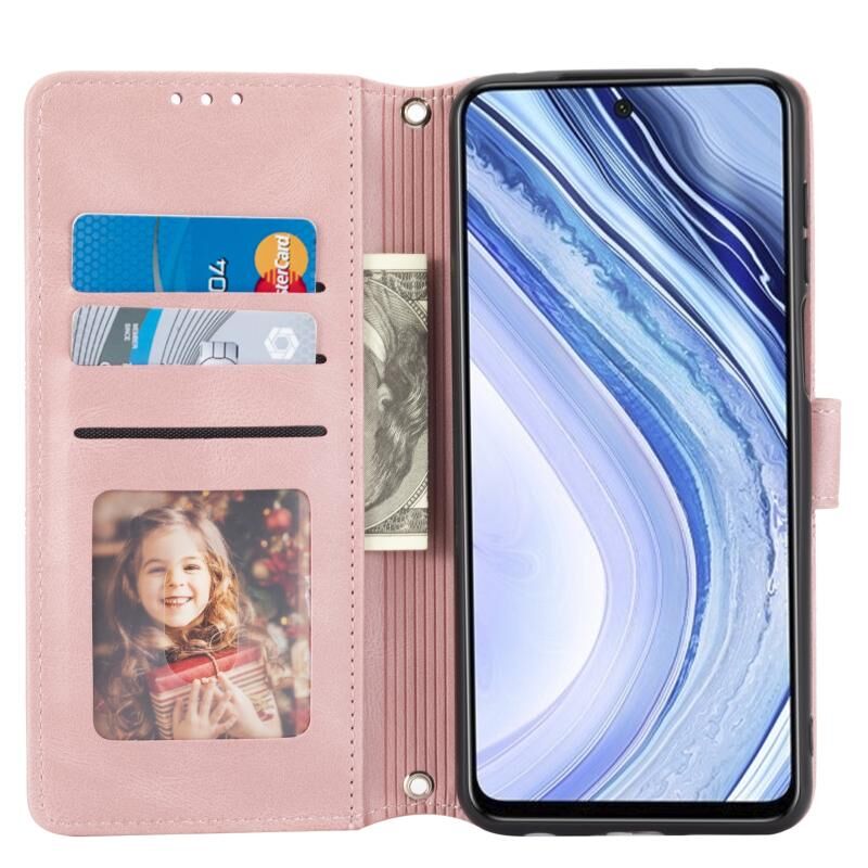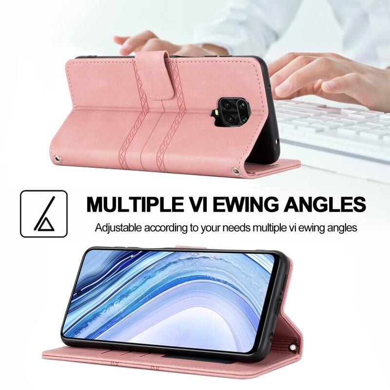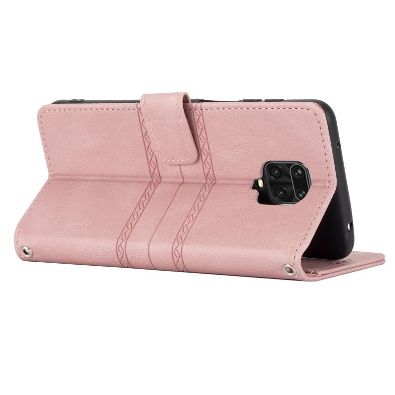 Για Xiaomi Redmi Note 9 Pro Max ανάγλυφη ριγέ μαγνητική πόρπη PU + TPU οριζόντια Flip δερμάτινη θήκη με θήκη & υποδοχή κάρτας & πορτοφόλι & κορνίζα φωτογραφιών & σφεντόνα (ροζ)