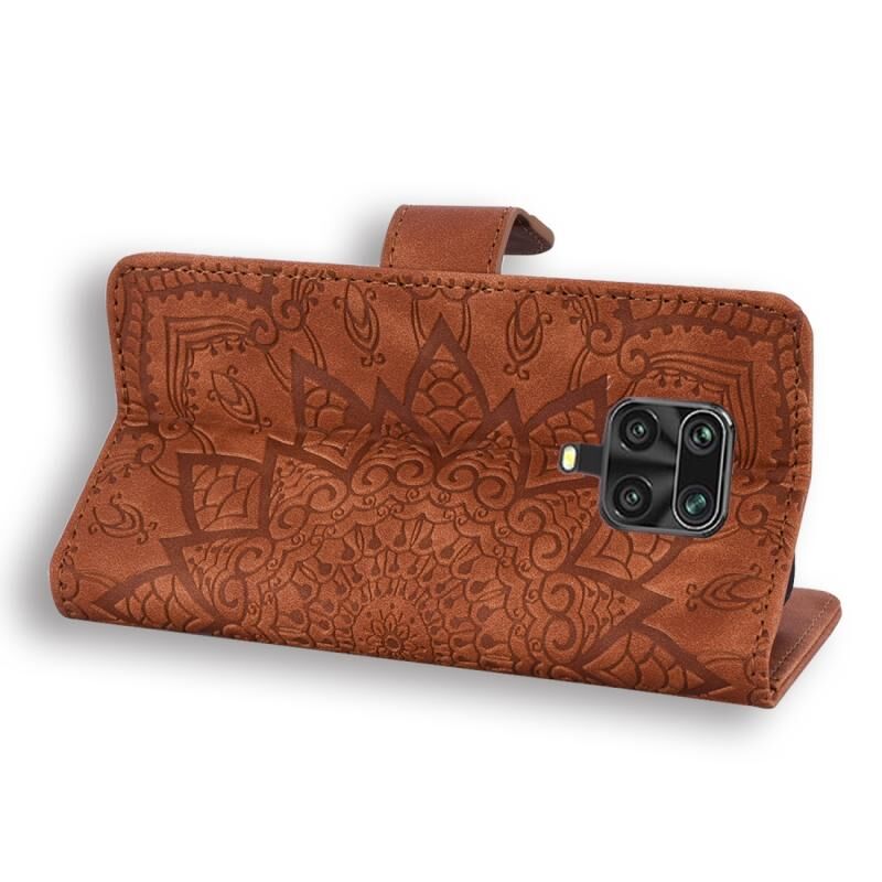 Θήκη για Xiaomi Redmi Note 9 Pro Max με ανάγλυφο σχέδιο ηλίανθου, οριζόντια, από δερματίνη PU με βάση στήριξης, θήκες για κάρτες, πορτοφόλι & λουρί (Μαύρο)