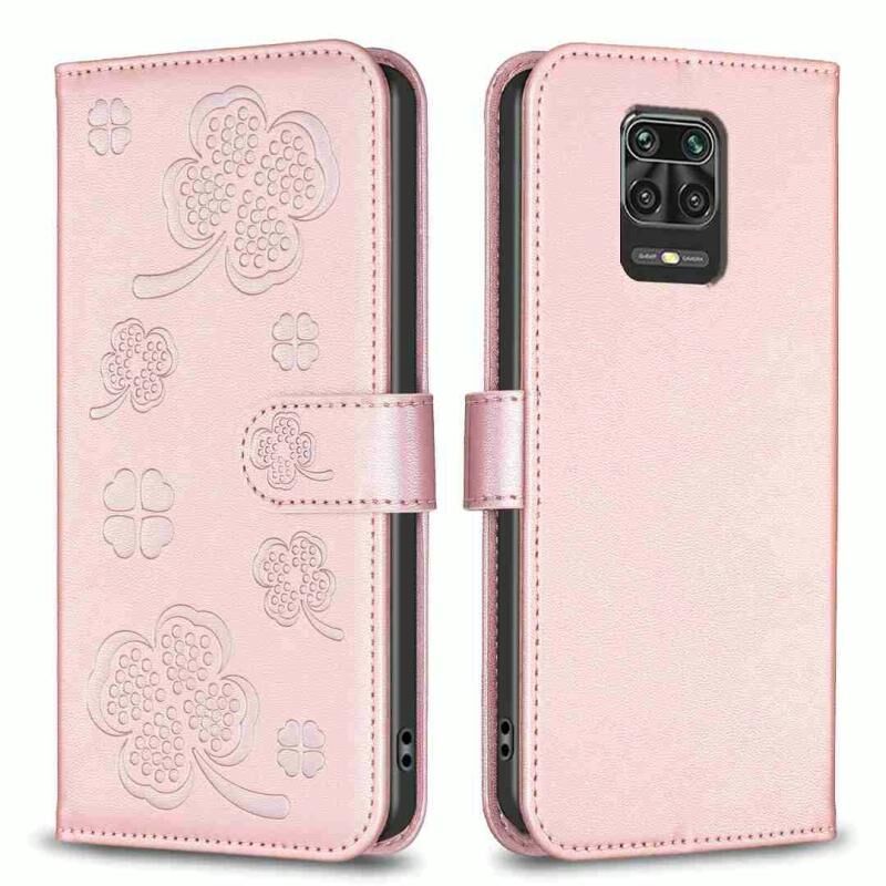 Για Xiaomi Redmi Note 9 Pro Max τετράφυλλο ανάγλυφη δερμάτινη θήκη τηλεφώνου (ροζ)