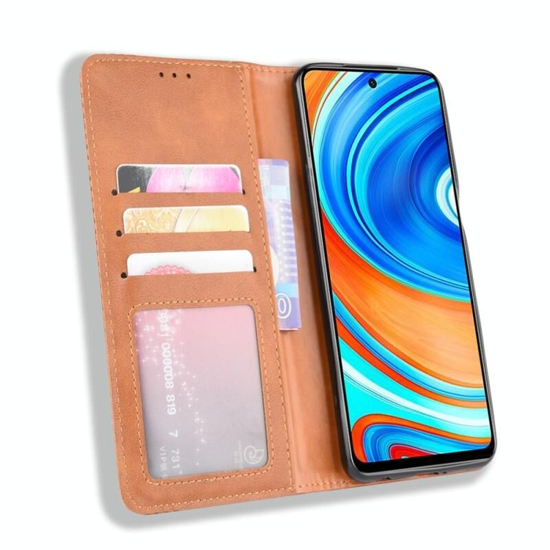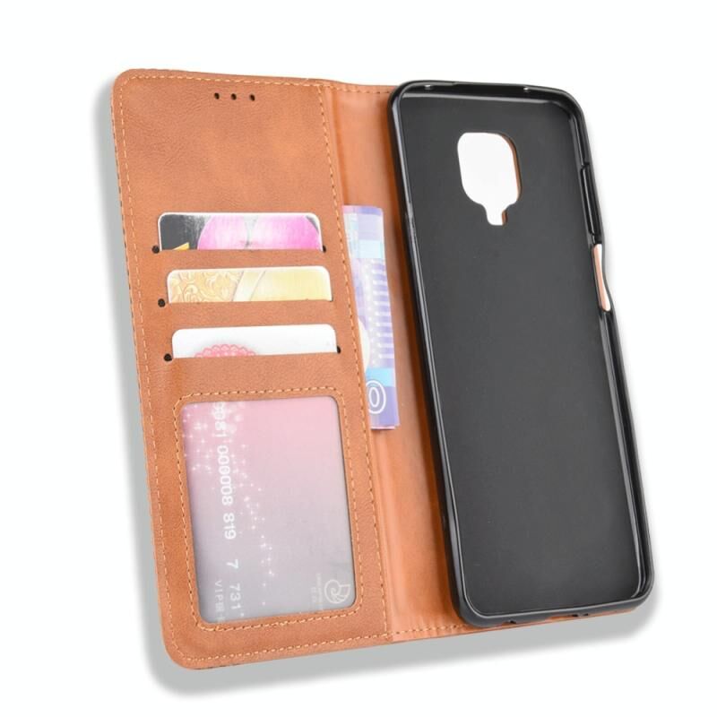 Για Xiaomi Redmi Note 9 Pro / Note 9s / Note 9 Pro Max Μαγνητική πόρπη Ρετρό τρελό άλογο υφή οριζόντια Flip δερμάτινη θήκη με θήκη & υποδοχές καρτών & πλαίσιο φωτογραφιών (καφέ)