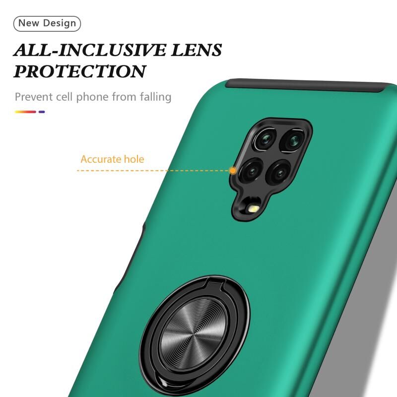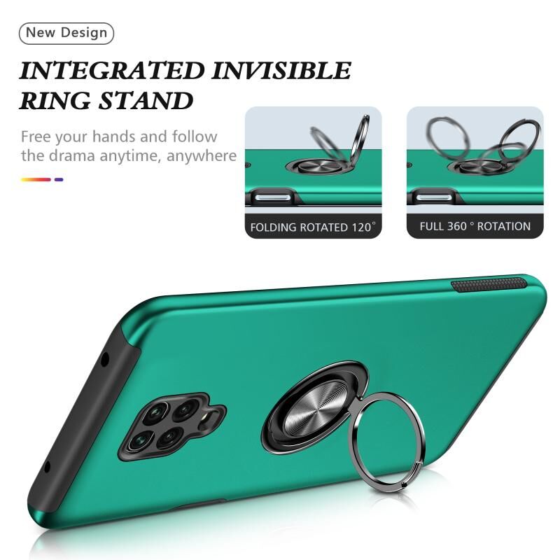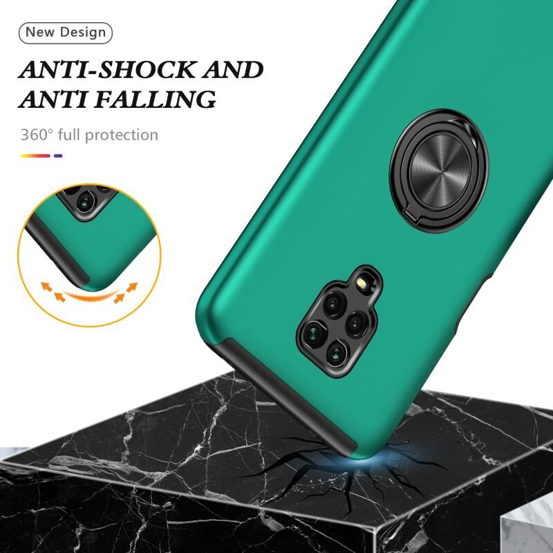 Για Xiaomi Redmi Note 9 Pro / Note 9S PC + TPU Shockproof μαγνητική θήκη τηλεφώνου με αόρατο κάτοχο δαχτυλίδι (σκούρο πράσινο)