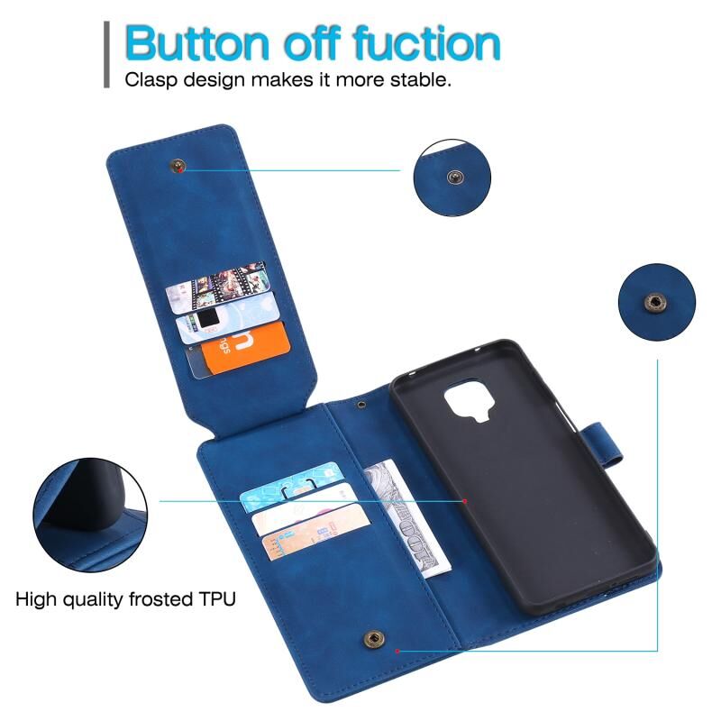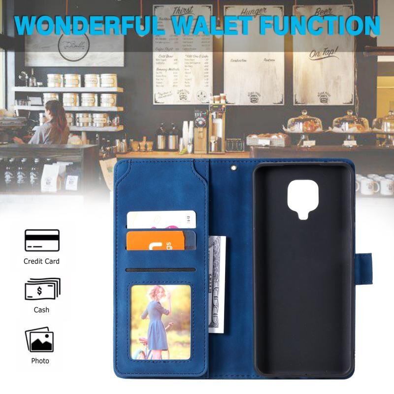 Για Xiaomi Redmi Note 9 Pro/Note 9S Skin Feel Business Οριζόντια Flip PU δερμάτινη θήκη με θήκη & υποδοχές πολλαπλών καρτών & πορτοφόλι & κορδόνι & κορνίζα & πλαίσιο φωτογραφιών (μπλε)