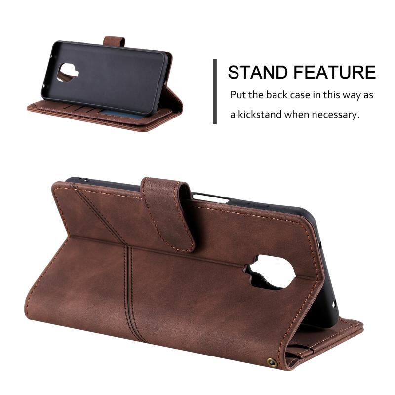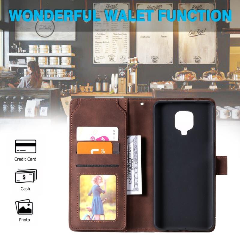 Για Xiaomi Redmi Note 9 Pro/Note 9S Skin Feel Business Οριζόντια Flip PU δερμάτινη θήκη με θήκη & υποδοχές πολλαπλών καρτών & πορτοφόλι & κορδόνι & κορνίζα & πλαίσιο φωτογραφιών (καφέ)