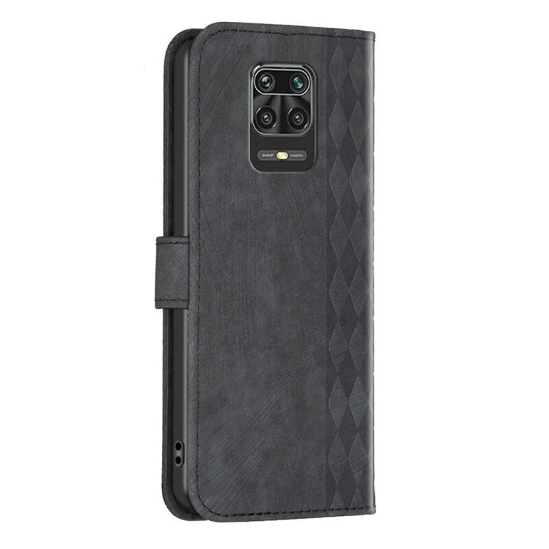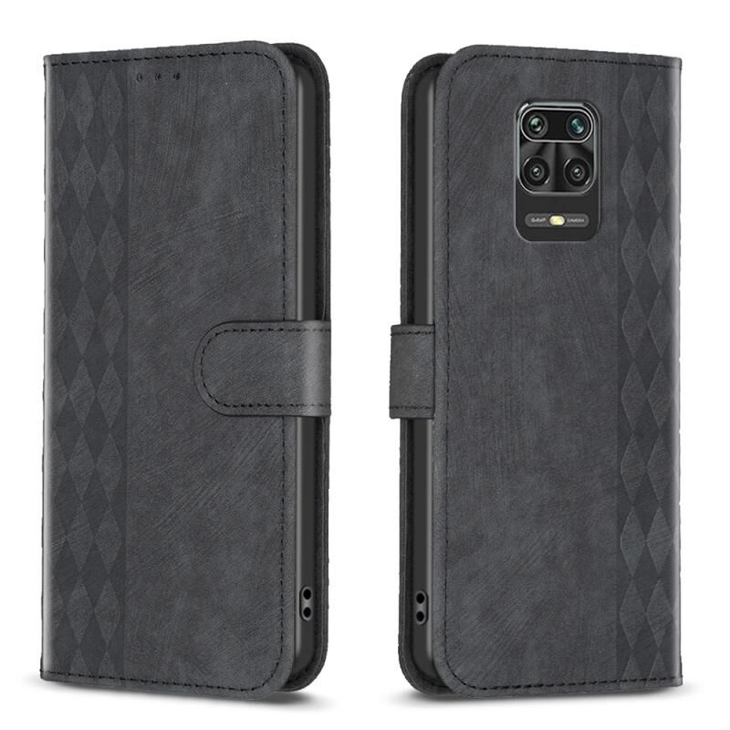 Για Xiaomi Redmi Note 9 Pro καρό ανάγλυφη δερμάτινη θήκη τηλεφώνου (μαύρο)