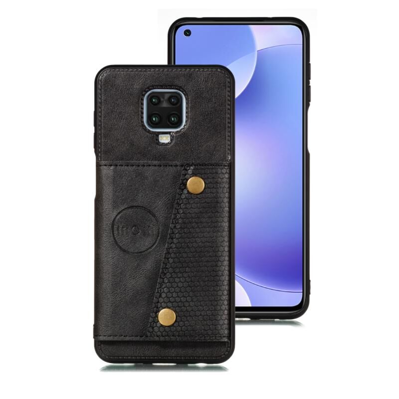 Για Xiaomi Redmi Note 9 Pro PU + TPU Shockproof μαγνητική προστατευτική θήκη με υποδοχές για κάρτες (μαύρο)