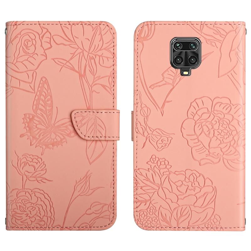 Θήκη τηλεφώνου δερμάτινη ανάγλυφη με αίσθηση αφής για Xiaomi Pinkmi Note 9 Pro, σχέδιο πεταλούδας και παιωνίας (ρόζ)