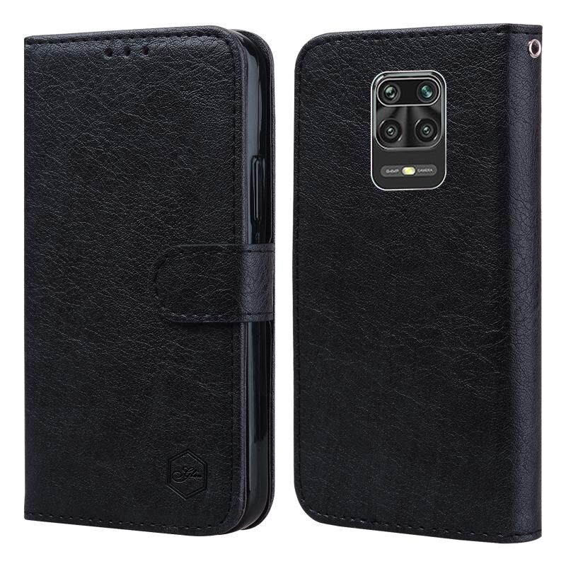 Θήκη κινητού τηλεφώνου για Xiaomi Redmi Note 9 Pro με υφή δέρματος λαδιού και PU + TPU (Μαύρο)