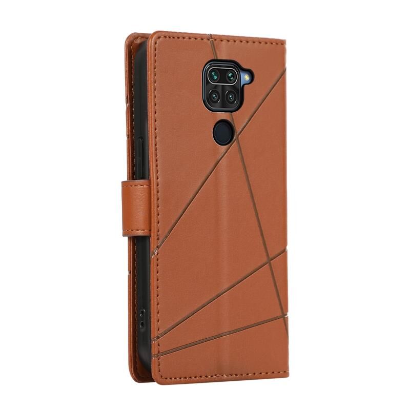 Θήκη τηλεφώνου Xiaomi Redmi Note 9 από γνήσιο δέρμα PU με ανάγλυφη υφή και λεπτομέρεια γραμμής (Μπλε)