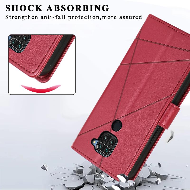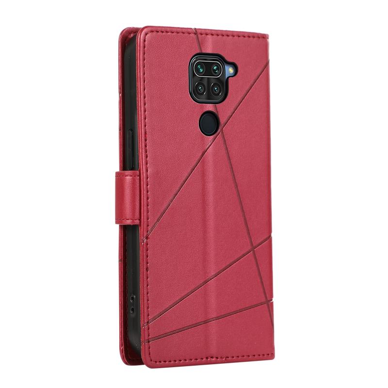 For Xiaomi Redmi Note 9 PU Genuine Leather Texture Embossed Line Phone Case(Red)