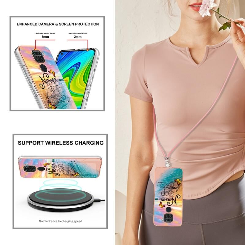 Θήκη τηλεφώνου Xiaomi Redmi Note 9 / Redmi 10X 4G με επιμετάλλωση IMD TPU με κορδόνι (Όνειρο Πεταλούδας)