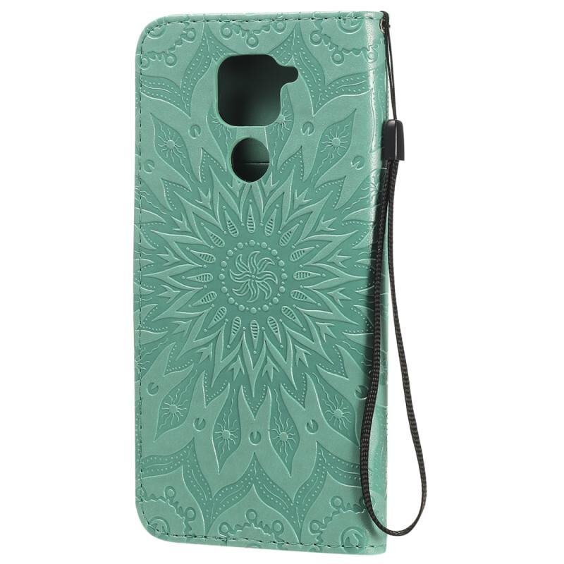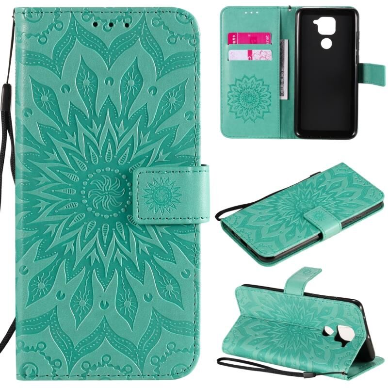 Για Xiaomi Redmi Note 9/Redmi 10X 4G ανάγλυφο ηλιοτρόπιο μοτίβο οριζόντια Flip PU δέρμα υπόθεση με θήκη & υποδοχές καρτών & πορτοφόλι & Lanyard (πράσινο)