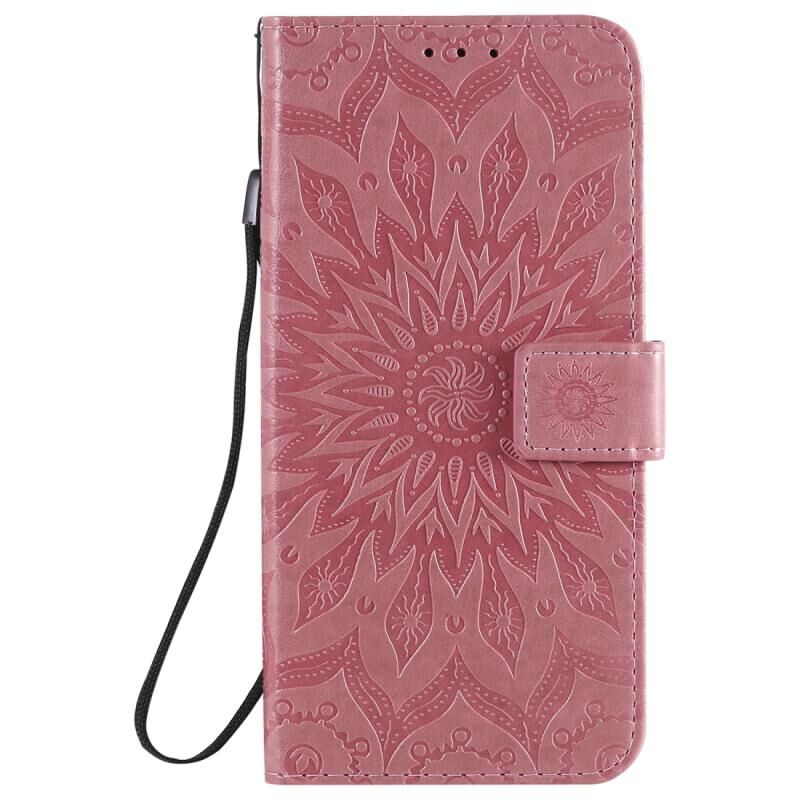 Για Xiaomi Redmi Note 9/Redmi 10X 4G ανάγλυφο ηλιοτρόπιο μοτίβο οριζόντια Flip PU δέρμα υπόθεση με θήκη & υποδοχές καρτών & πορτοφόλι & Lanyard (ροζ)
