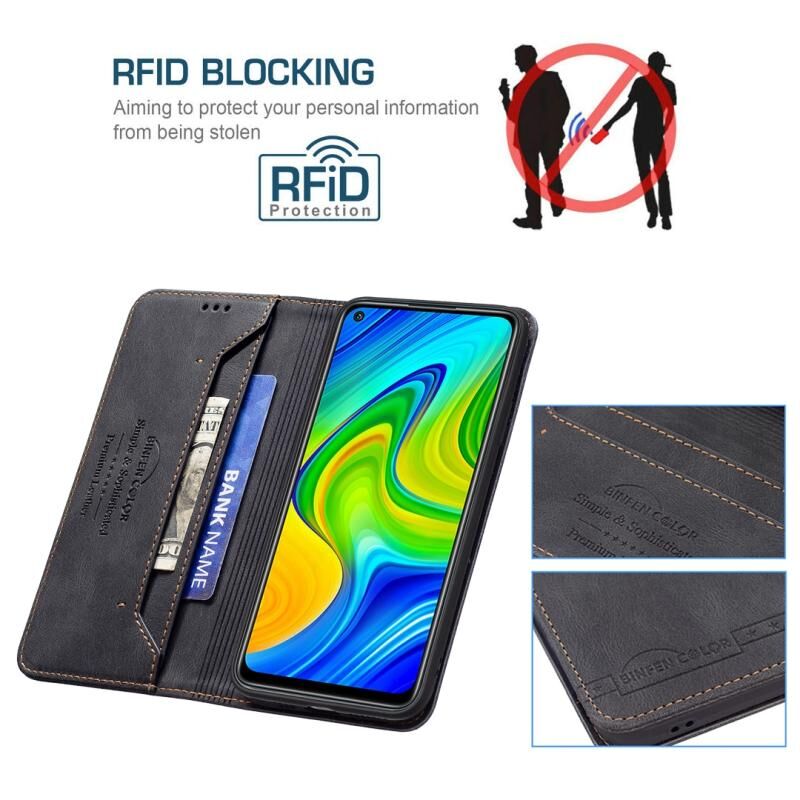 Για Xiaomi Redmi Note 9/Redmi 10X 4G Μαγνητικό RFID Blocking Anti-Theft Δερμάτινη θήκη με θήκη & υποδοχές καρτών & πορτοφόλι (Μαύρο)