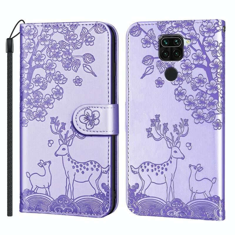Για Xiaomi Redmi Note 9 Sika Deer ανάγλυφο μοτίβο οριζόντια Flip PU δέρμα υπόθεση με κάτοχο & υποδοχή για κάρτες & πορτοφόλι & πλαίσιο φωτογραφιών (μωβ)