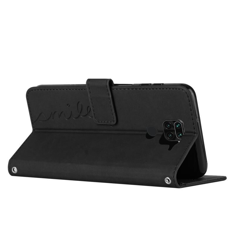 Για Xiaomi Redmi Note 9 δέρμα αίσθηση καρδιά μοτίβο δερμάτινη θήκη τηλεφώνου με κορδόνι (Μαύρο)