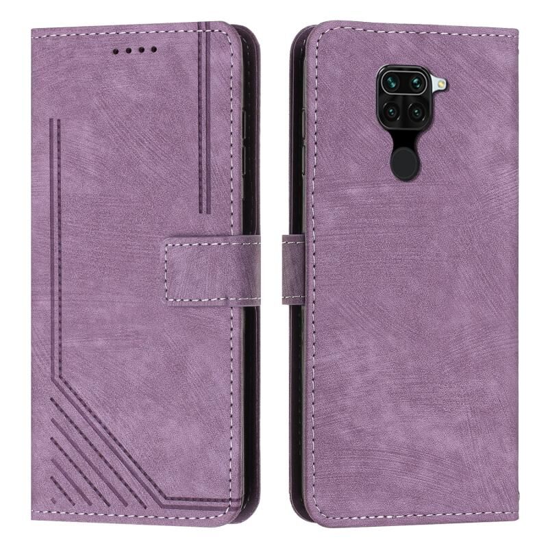 Για Xiaomi Redmi Note 9 δέρμα αίσθηση ριγέ μοτίβο δερμάτινη θήκη τηλεφώνου με κορδόνι (μωβ)