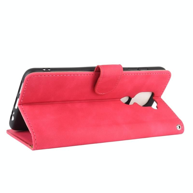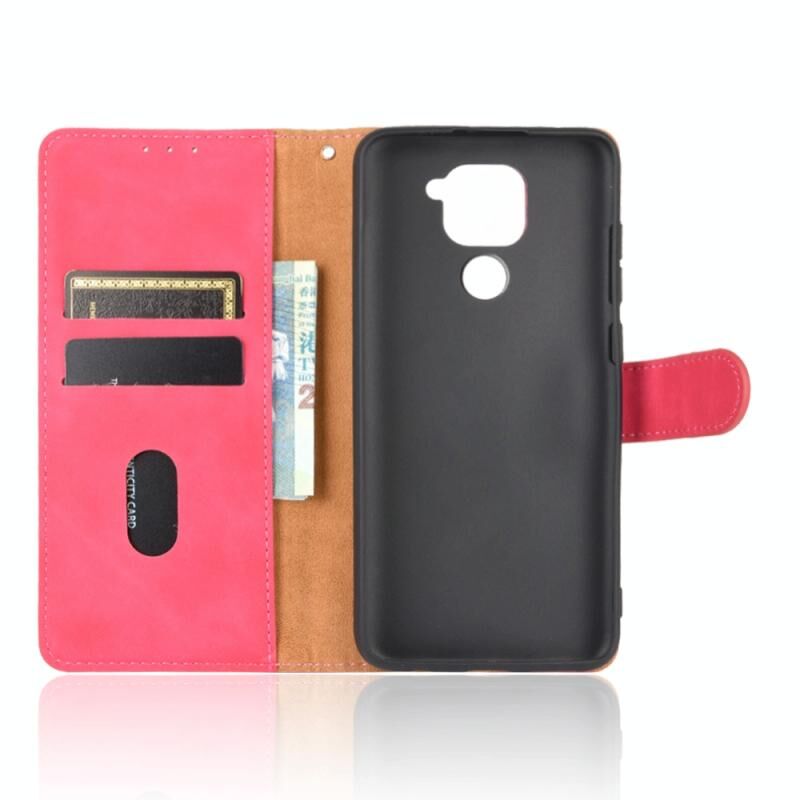 Για Xiaomi Redmi Note 9 Αμιγές χρώμα δέρμα αίσθηση μαγνητική πόρπη οριζόντια Flip μοσχάρι υφή PU δέρμα υπόθεση με κάτοχο & υποδοχές καρτών & πορτοφόλι (Rose Red)