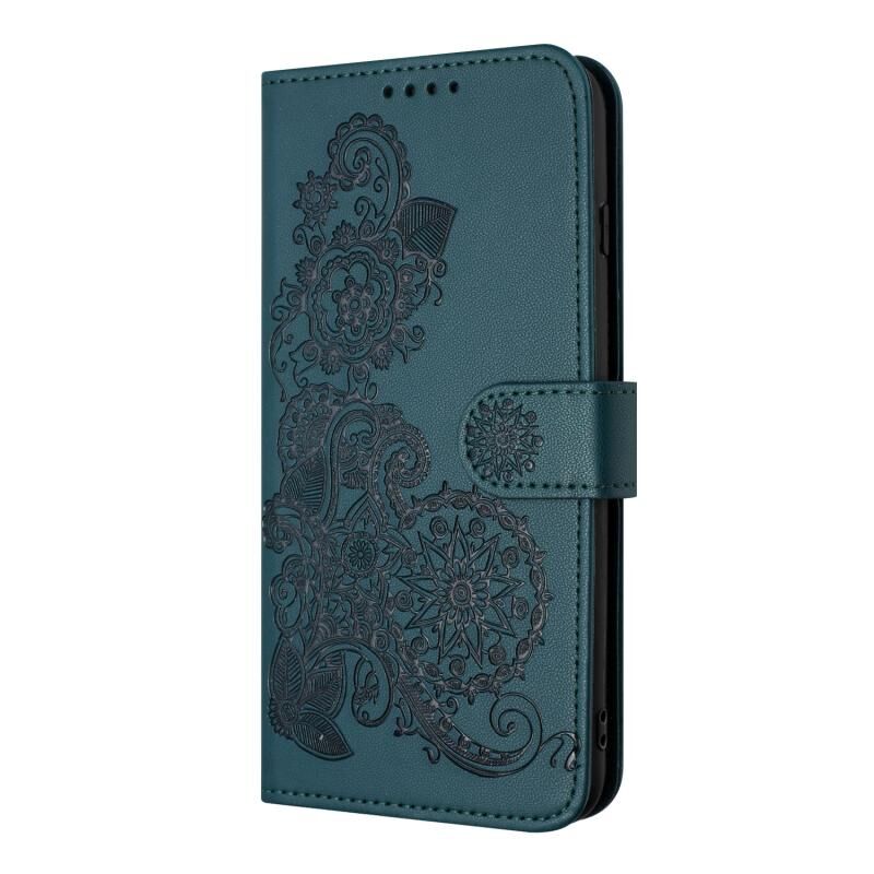 Για xiaomi Redmi Note 9S Datura λουλούδι ανάγλυφο Flip υπόθεση τηλεφώνου δέρμα (σκούρο πράσινο)