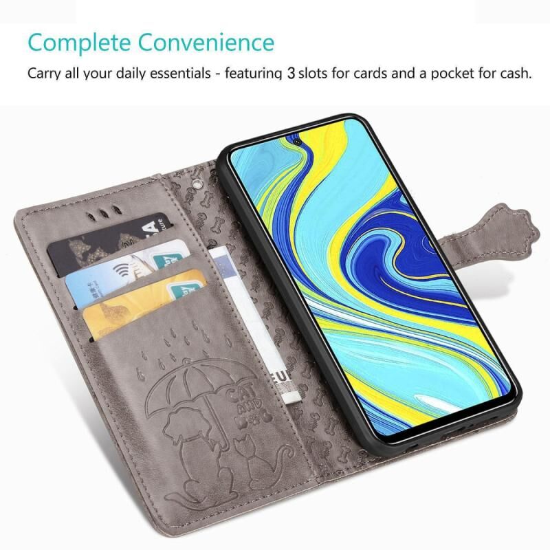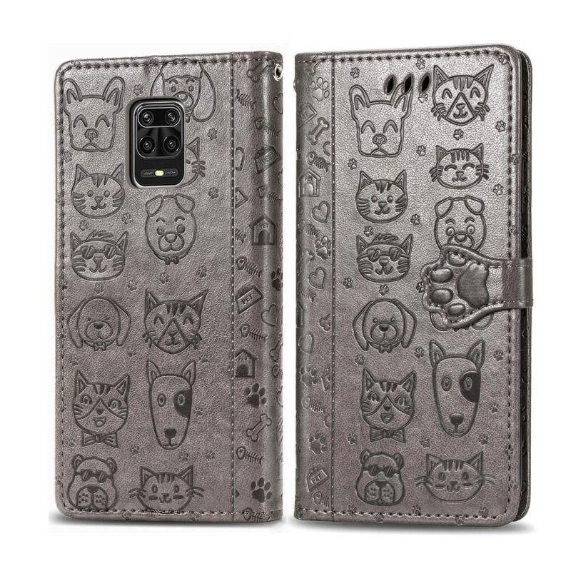 Για Xiaomi Redmi Note 9S/Note 9 Pro/Note 9 Pro Χαριτωμένη Θήκη Δέρματος Οριζόντιας Αναδίπλωσης με ανάγλυφα σχέδια Γάτας και Σκύλου με Στήριγμα / Θήκη Κάρτας / Πορτοφόλι / Λουρί (Γκρι)