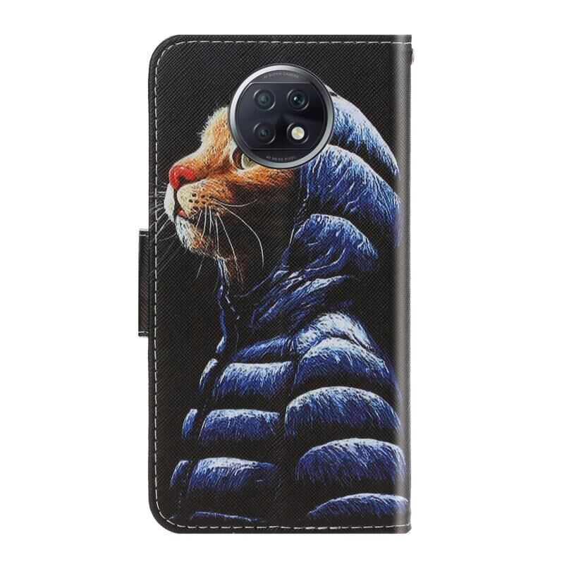 Θήκη τηλεφώνου από δέρμα με έγχρωμη τρισδιάστατη σχεδίαση για Xiaomi Redmi Note 9T (Γάτα με πουπουλένιο μπουφάν)