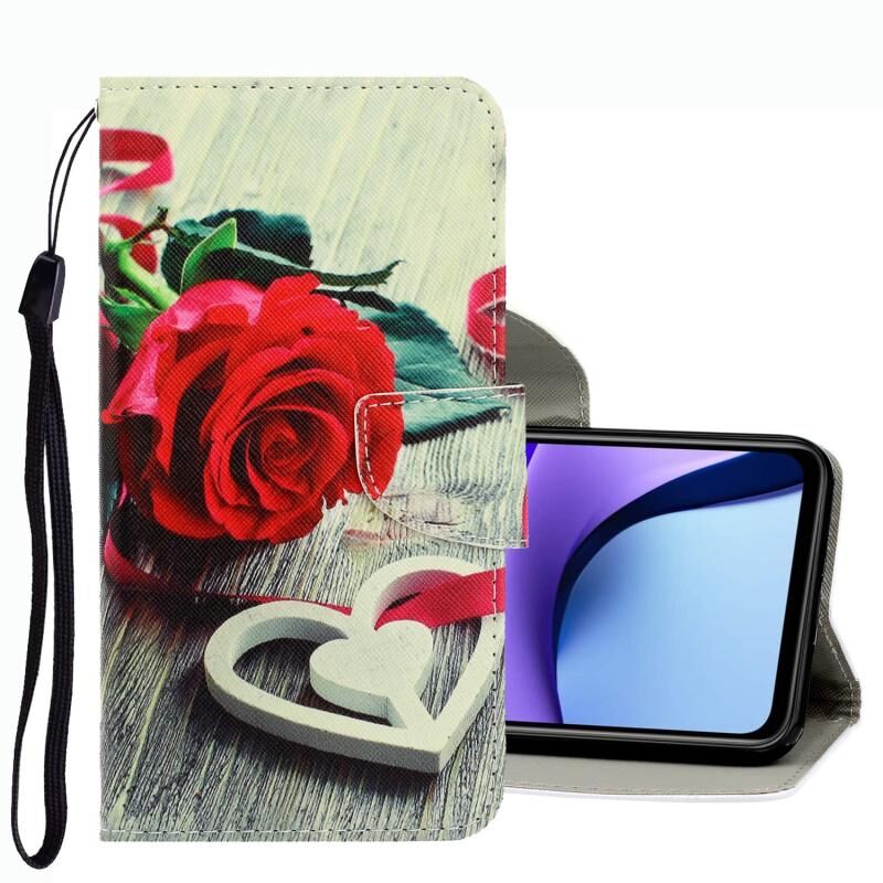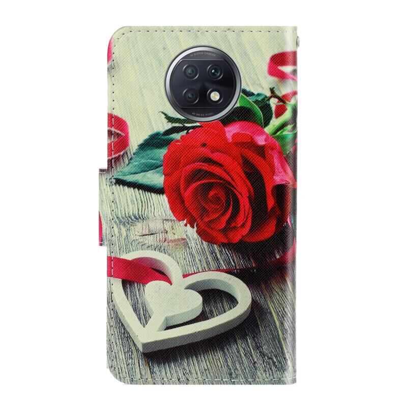 Θήκη τηλεφώνου από δέρμα με έγχρωμη τρισδιάστατη σχεδίαση για Xiaomi Redmi Note 9T (Κόκκινο Ρόδο)