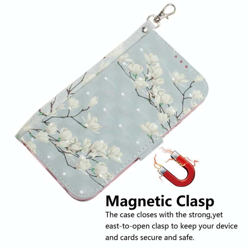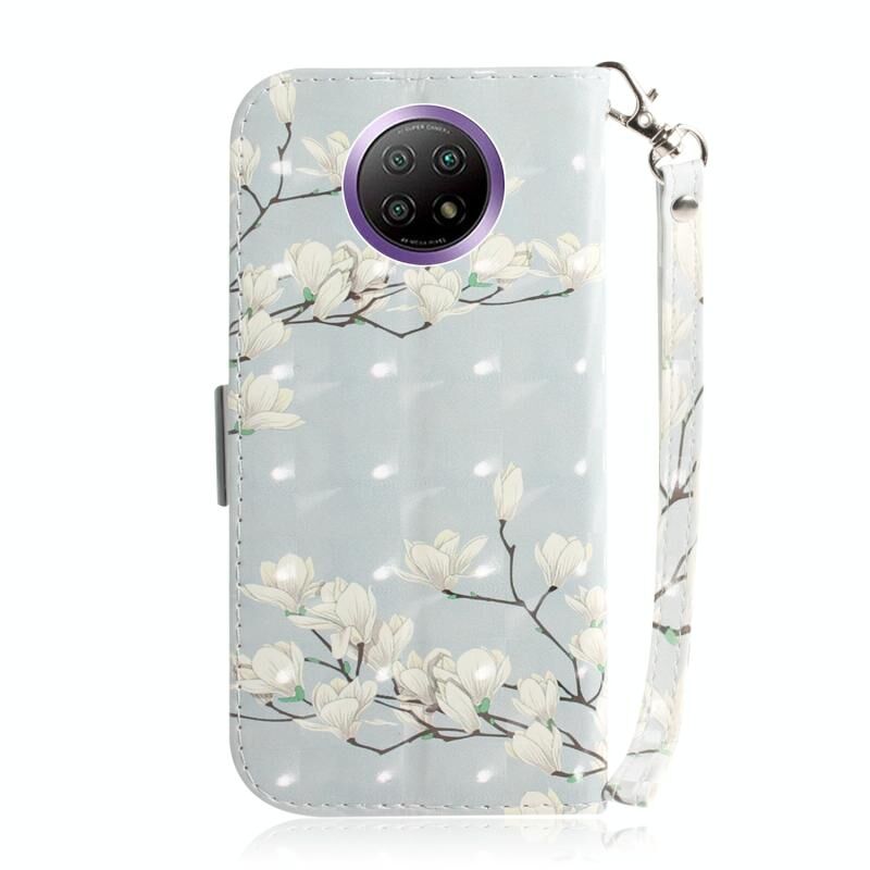 Θήκη δέρματος οριζόντιας αναδίπλωσης με μαγνητική έλξη και τρισδιάστατο σχέδιο για Xiaomi Redmi Note 9T / 9 5G, με βάση στήριξης, θήκη για κάρτες, πορτοφόλι και κορδόνι (Μαγνολία)