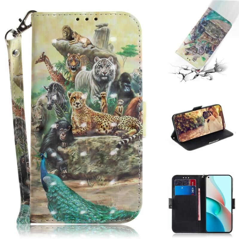 Θήκη δέρματος οριζόντιας αναδίπλωσης με μαγνητική έλξη και τρισδιάστατο σχέδιο για Xiaomi Redmi Note 9T / 9 5G, με βάση στήριξης, θήκη για κάρτες, πορτοφόλι και κορδόνι (Ζωολογικός κήπος)