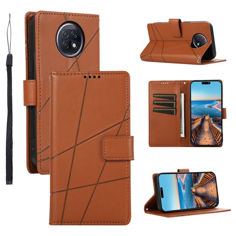 For Xiaomi Redmi Note 9T PU Genuine Leather Texture Embossed Line Phone Case(Brown)