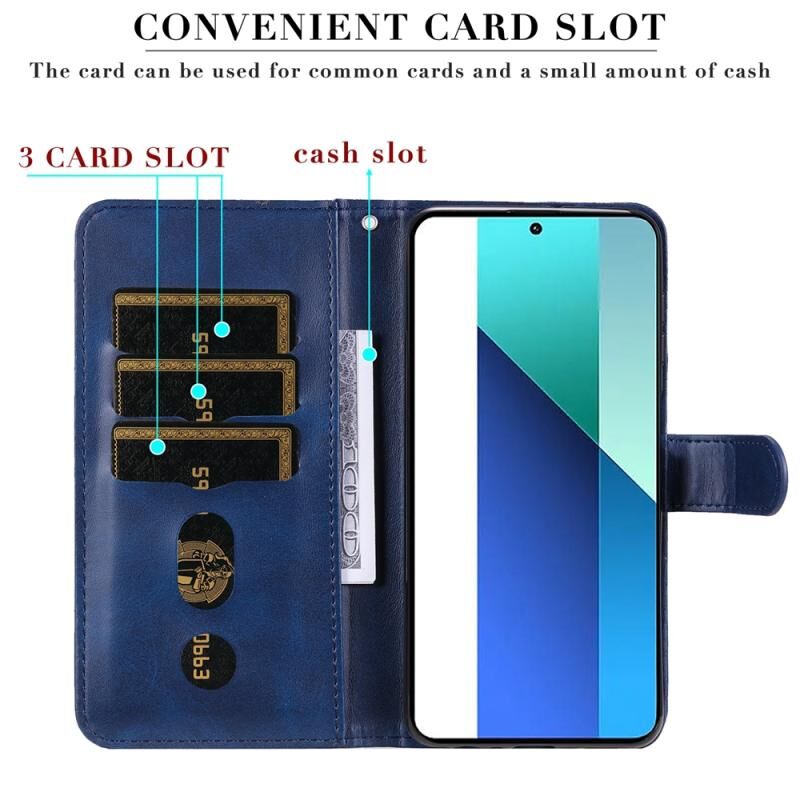 Για Xiaomi Redmi Note13 4G Μόδα μοσχάρι υφή φερμουάρ δερμάτινη θήκη τηλεφώνου (μπλε)
